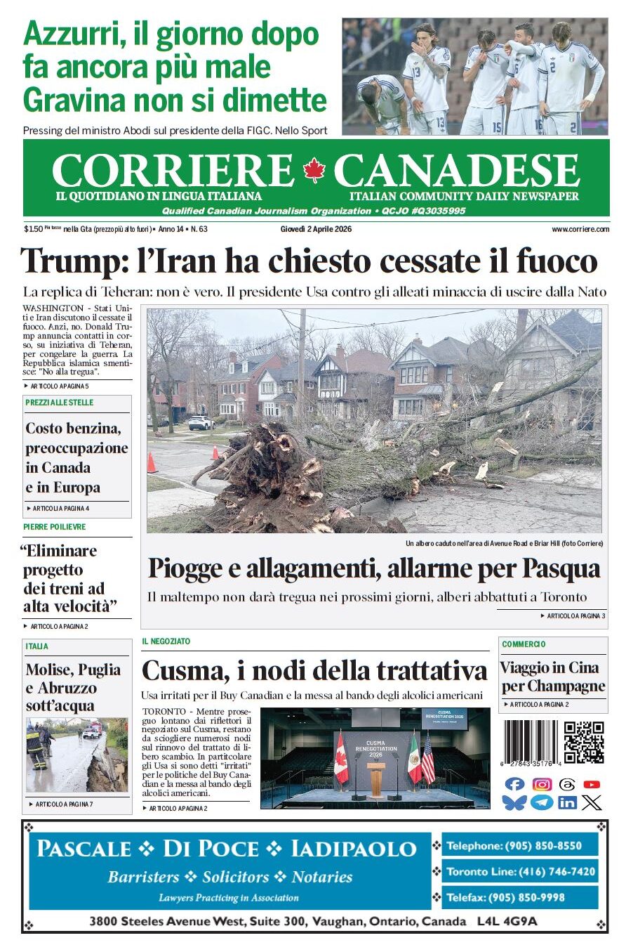 Read MoreTORONTO – Procede a singhiozzo il negoziato per il rinnovo del Cusma. L’amara ammissione, fatta dal ministro per le relazioni…….