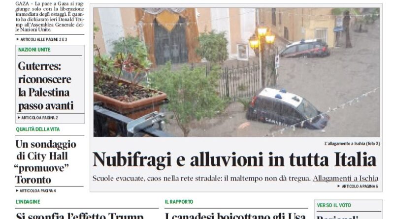 Read MoreTORONTO – L’intero giornale di oggi è disponibile, gratuitamente, nell’edizione digitale, cliccando qui: Corriere Canadese, 24 Settembre 2025. Purtroppo, per…….