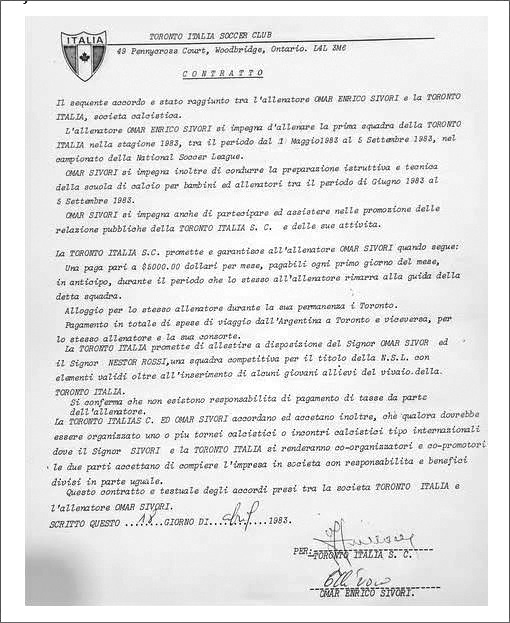 Era il 1983. La Toronto Italia della National Soccer League mise a segno quello che possiamo ben definire il “primo acquisto” SENSAZIONALE, del calcio locale: l’ingaggio della superstar argentina OMAR SIVORI, ex nazionale azzurro e campione di Juventus e Napoli. Nicola Sparano sul Corriere Canadese dell’epoca scriveva: “…Gus Mandarino, general manager del club che tra i soci aveva Domenic Matera , chiarisce che il colpo-Sivori fu possibile grazie al fondatore delle Seven View e spiega il perché… Sivori venne a Toronto perché persi una scommessa con Domenic Matera. Carlo Del Monte era passato agli Italo-Canadiens e c’era la necessità di sostituirlo.