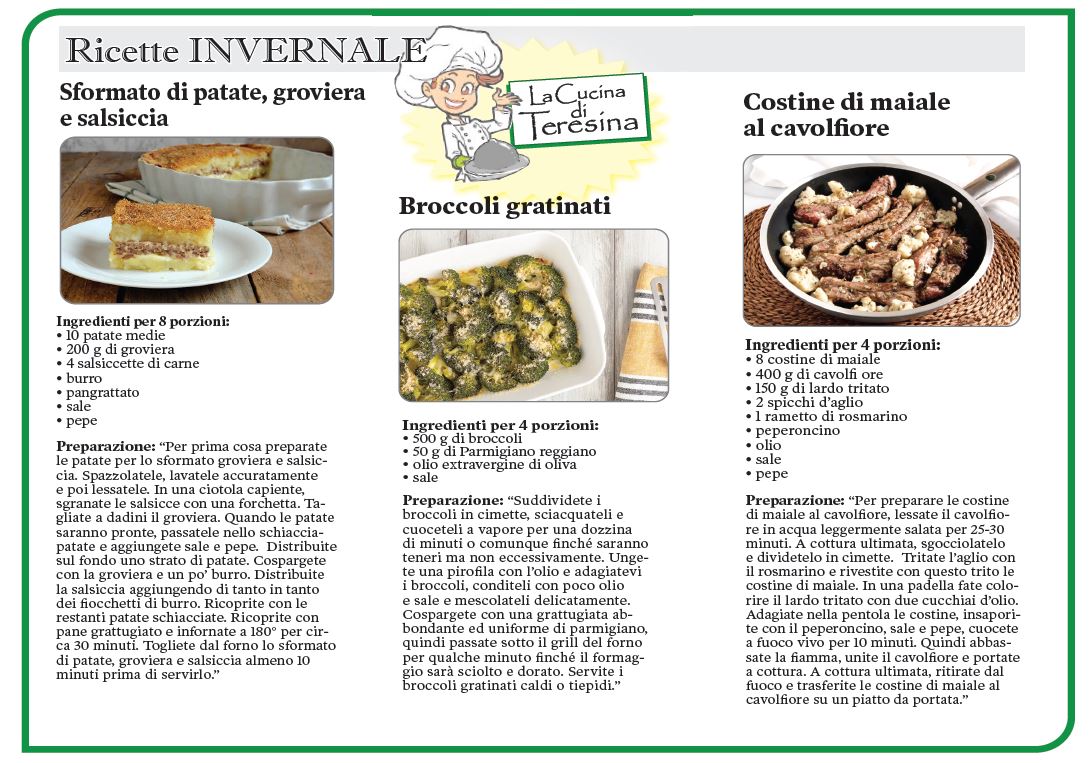 TORONTO – Dalla “Cucina di Teresina” … ecco a voi una serie di ricette invernali.