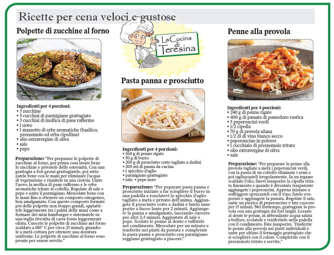 TORONTO – Dalla “Cucina di Teresina” … ecco a voi una serie di ricette perfette per una cena veloce ma gustosa!