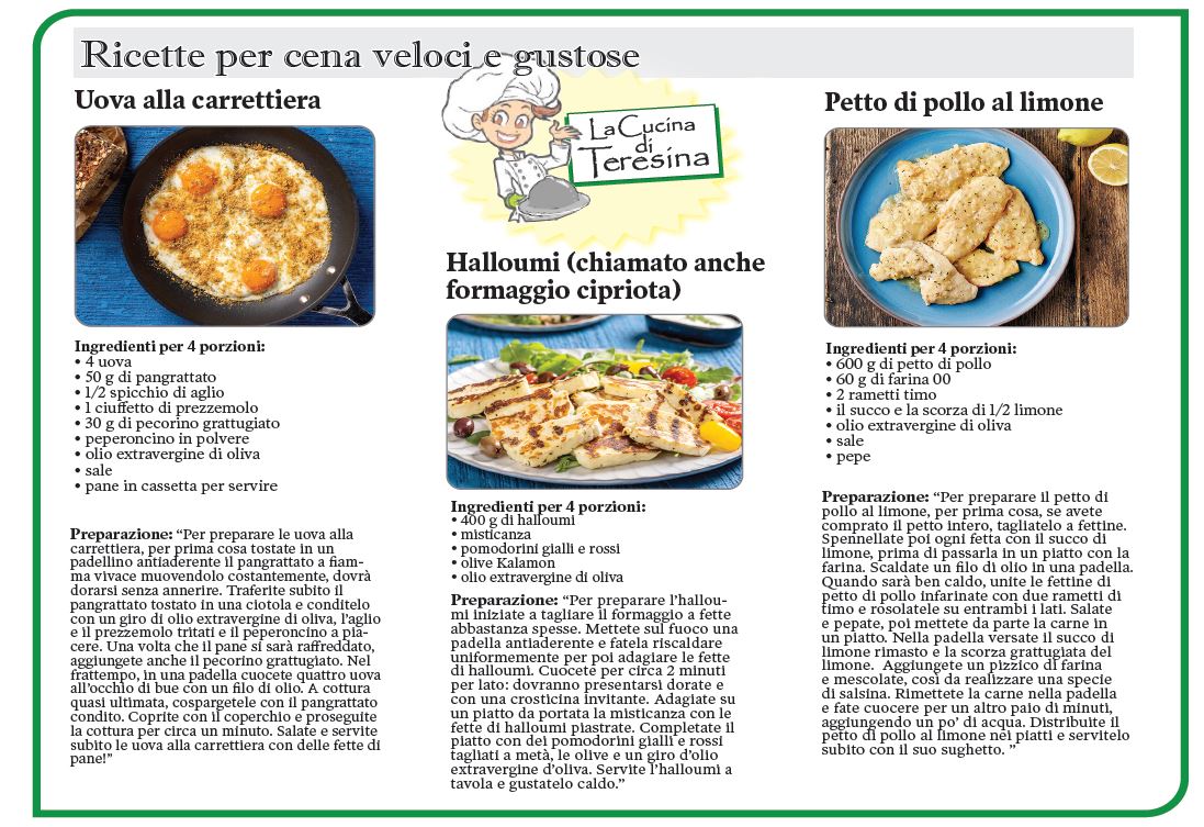 TORONTO – Dalla “Cucina di Teresina” … ecco a voi una serie di ricette perfette per una cena veloce ma gustosa!