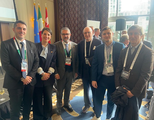 In alto, da sinistra: Carlo Angelo Bocchi, Italian Trade Commissioner in Canada, il Console Generale d’Italia, Luca Zelioli, il Viceministro delle Imprese, Valentino Valentini, l’Ambasciatore d’Italia in Canada, Alessandro Cattaneo, e Lorenzo Di Donato, CEO di Alkeemia (foto: Ambasciata d’Italia in Canada); qui sotto, una fotogallery della convention (foto: Corriere Canadese / Ambasciata d’Italia in Canada)
