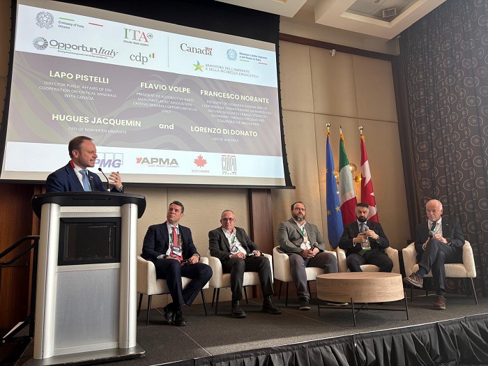 L’Italia, che aveva interrotto l’esplorazione e l’estrazione mineraria su base economicamente significativa negli anni ’80, ha riacceso il suo interesse per il settore minerario canadese. Attraverso il proprio corpo diplomatico, guidato dal Ministero degli Affari Esteri e quello delle Imprese (per mezzo dell’onorevole Valentino Valentini e dell’Ambasciatore Alessandro Cattaneo) insieme a inviati speciali per le Risorse Naturali e le Strategie Economiche del Made in Italy, l’Italia ha di fatto annunciato il suo interesse attivo per il lato “downstream”, ovvero quello della commercializzazione del settore minerario.