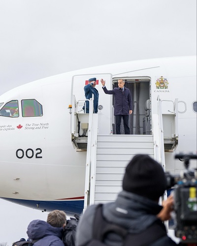 In alto, l’arrivo di Mark Carney in Australia (foto: X – Carney)