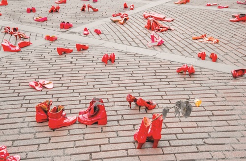 Nella foto in alto: scarpette rosse in piazza contro la violenza sulle donne (foto Associazione Demetra Donne in Aiuto)