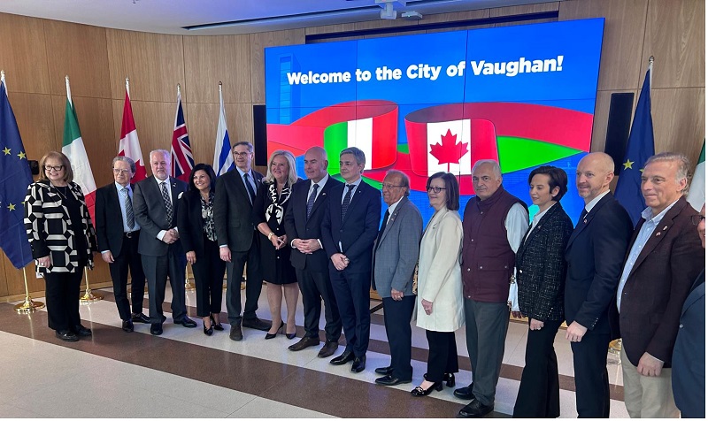 Nella foto in alto, da sinistra: la MP Anna Roberts, i consiglieri comunali di Vaughan Gino Rosati, Chris Ainsworth e Rosanna DeFrancesca, il Console Generale Luca Zelioli, la Vicesindaca di Vaughan Linda Jackson, il Sindaco di Vaughan Steven Del Duca, l’Ambasciatore Alessandro Cattaneo, i consiglieri comunali Mario Ferri, Marilyn Iafrate e Mario Racco, la MP Melissa Lantsman, l’MP Michael Guglielmin e il Senatore Toni Varone; qui sotto, una fotogallery dei tre eventi (foto: Corriere Canadese)
