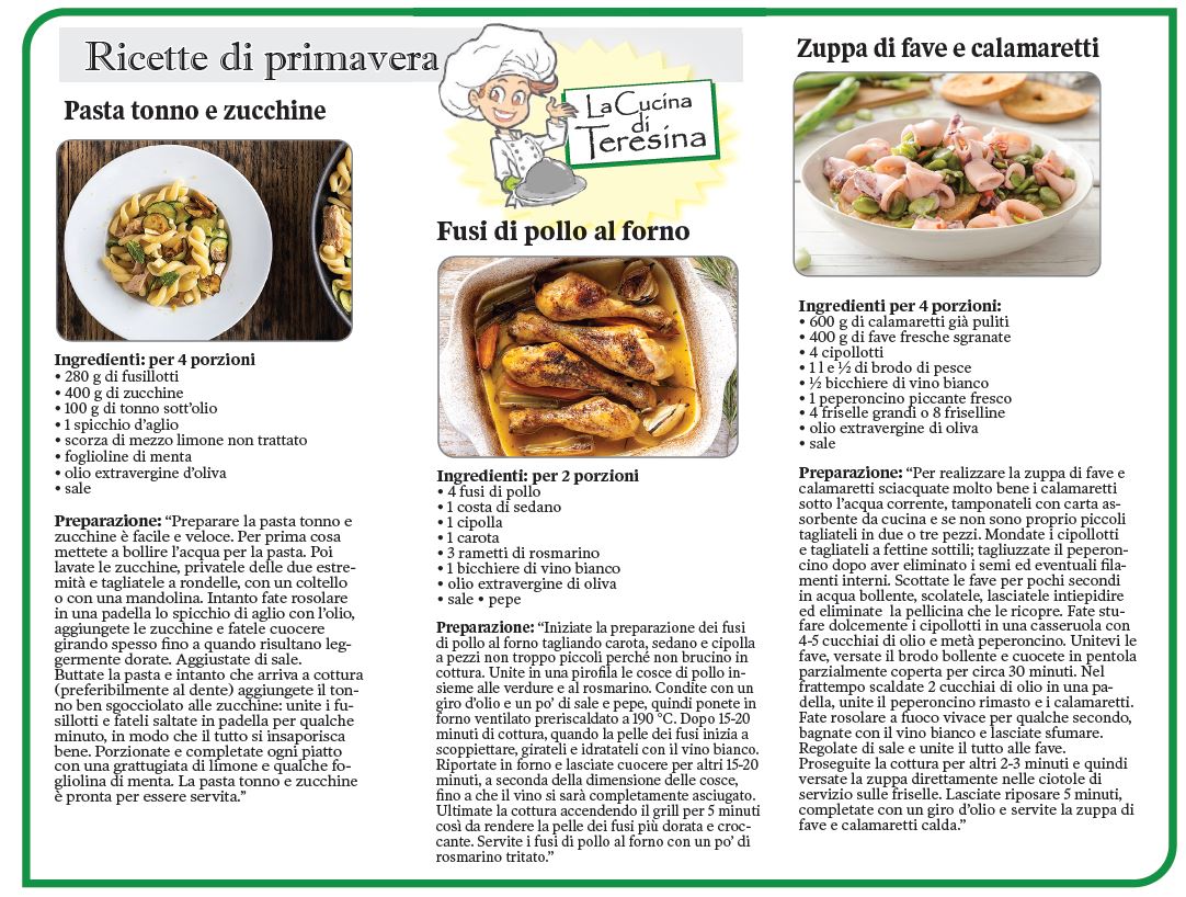 TORONTO – Dalla “Cucina di Teresina” … ecco a voi una serie di ricette di primavera.
