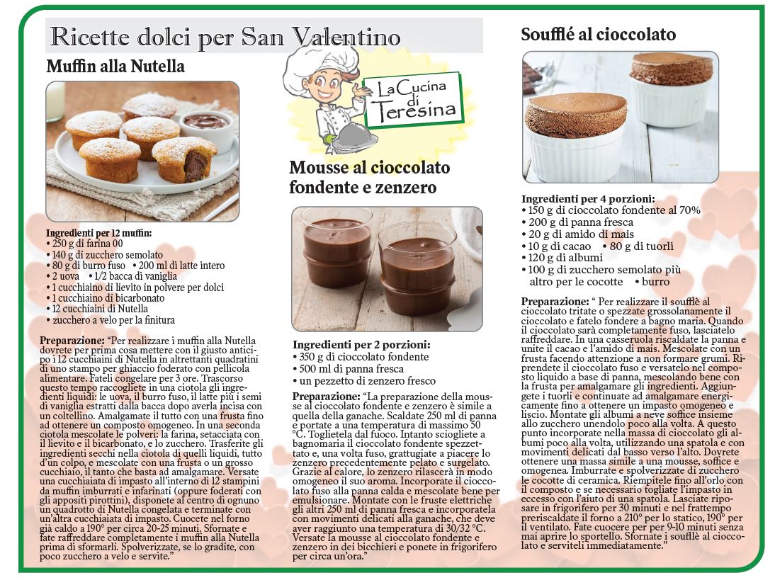 TORONTO – Dalla “Cucina di Teresina” … ecco a voi altre ricette per preparare dei dolci per San Valentino!