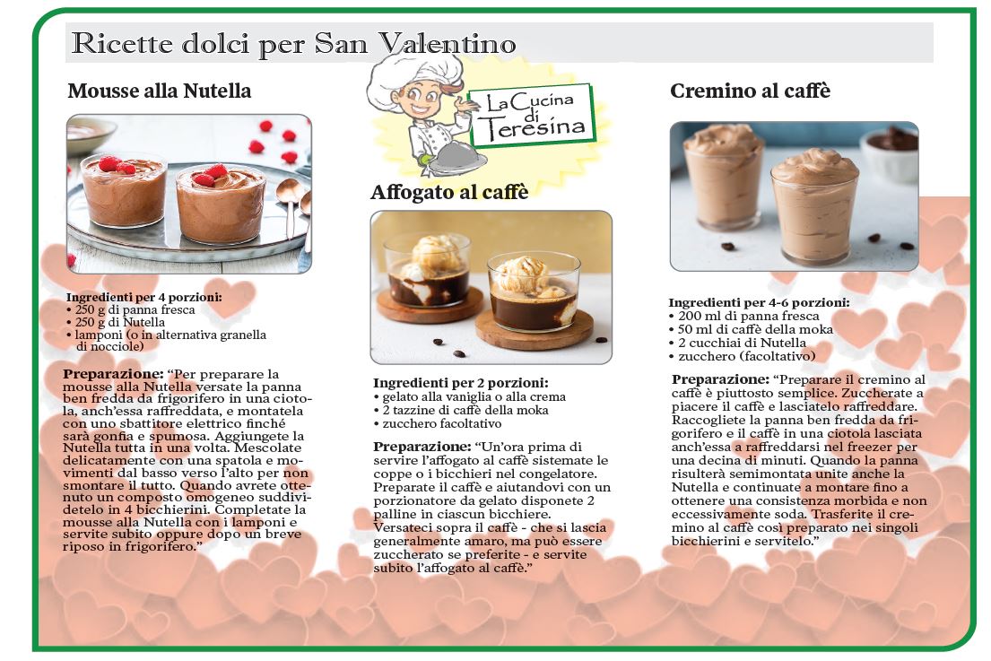 TORONTO – Dalla “Cucina di Teresina” … ecco a voi una serie di ricette per preparare dei dolci per San Valentino!