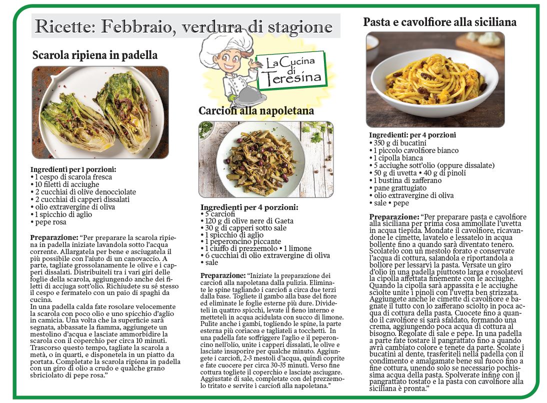 TORONTO – Dalla “Cucina di Teresina” … ecco a voi alcune ricette ideali per il mese di febbraio!
