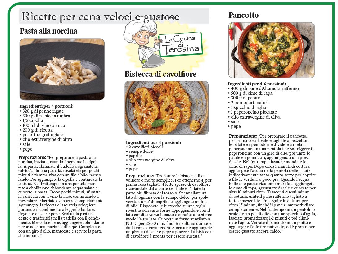 TORONTO – Dalla “Cucina di Teresina” … ecco a voi una serie di ricette per preparare una cena veloce e gustosa!