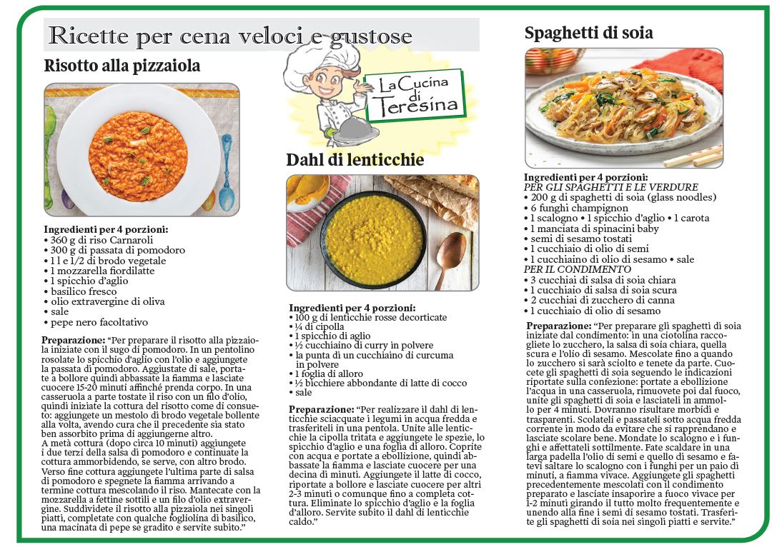 TORONTO – Dalla “Cucina di Teresina” … ecco a voi una serie di ricette per preparare una cena veloce e gustosa!