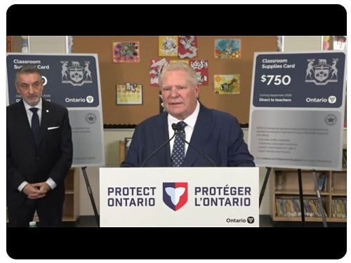 TORONTO – Il premier dell’Ontario, Doug Ford, non ha ancora chiarito se i fiduciari scolastici (i cosiddetti “trustee” dei Provveditorati, eletti dai cittadini) saranno presenti sulla scheda elettorale quando, in autunno, gli abitanti della provincia voteranno nelle varie elezioni municipali previste. “Presto forniremo una risposta,” ha dichiarato Ford ai giornalisti mercoledì mattina durante la conferenza stampa a Etobicoke, dove ha presentato il “Classroom Supplies Fund”, un nuovo fondo che fornirà agli insegnanti di scuola primaria 750 dollari per ogni anno scolastico per l’acquisto diretto di materiali per le loro classi (qui il nostro articolo). Ebbene, durante la conferenza, alla domanda se il suo governo intenda eliminare del tutto i consiglieri scolastici, Ford ha risposto: “Non posso confermarlo in questo momento. Tutto è sul tavolo”.