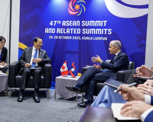 In alto: Mark Carney con il primo ministro del Laos Sonexay Siphandone (foto: X – Carney)