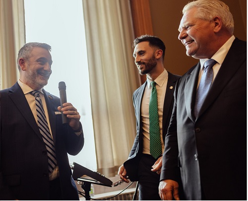 In alto, da sinistra: Paul Calandra, Stephen Lecce e Doug Ford (foto da Twitter X – @PaulCalandra)
