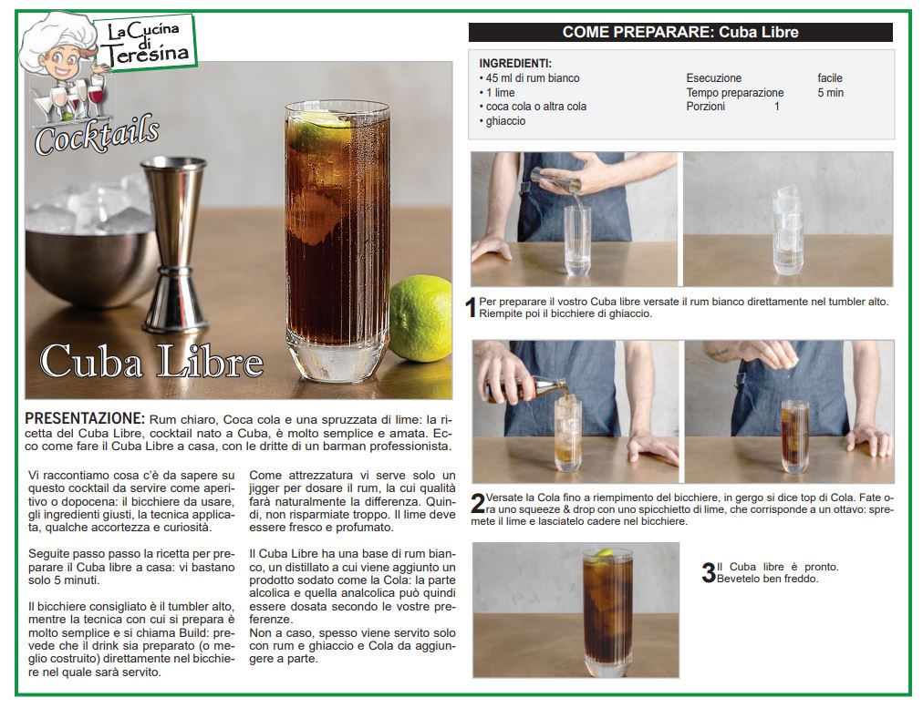 TORONTO – Dalle pagine del Corriere Canadese, per la “Cucina di Teresina”: il cocktail Cuba Libre.