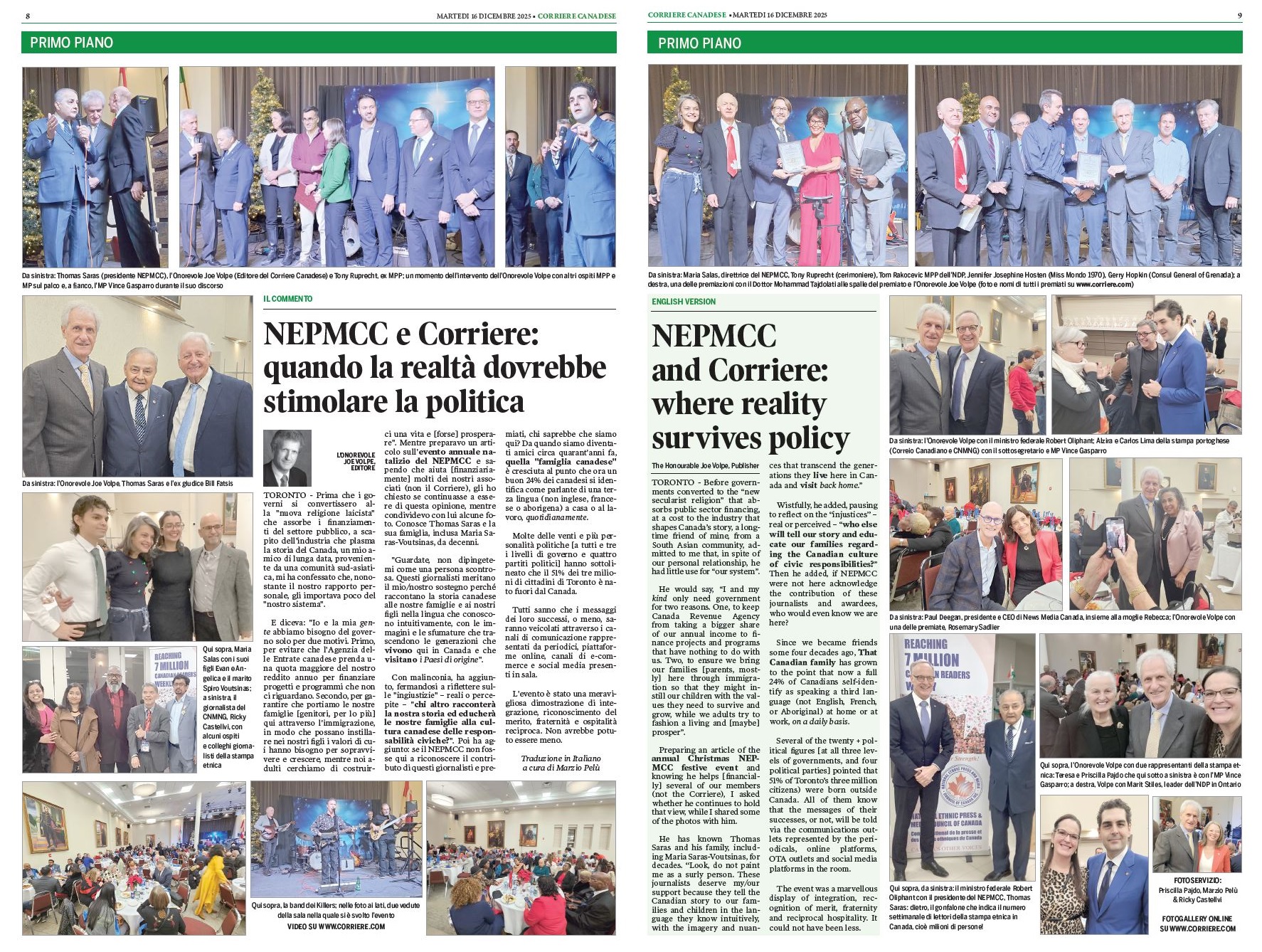 La festa del National Ethnic Press & Media Council of Canada: due pagine speciali