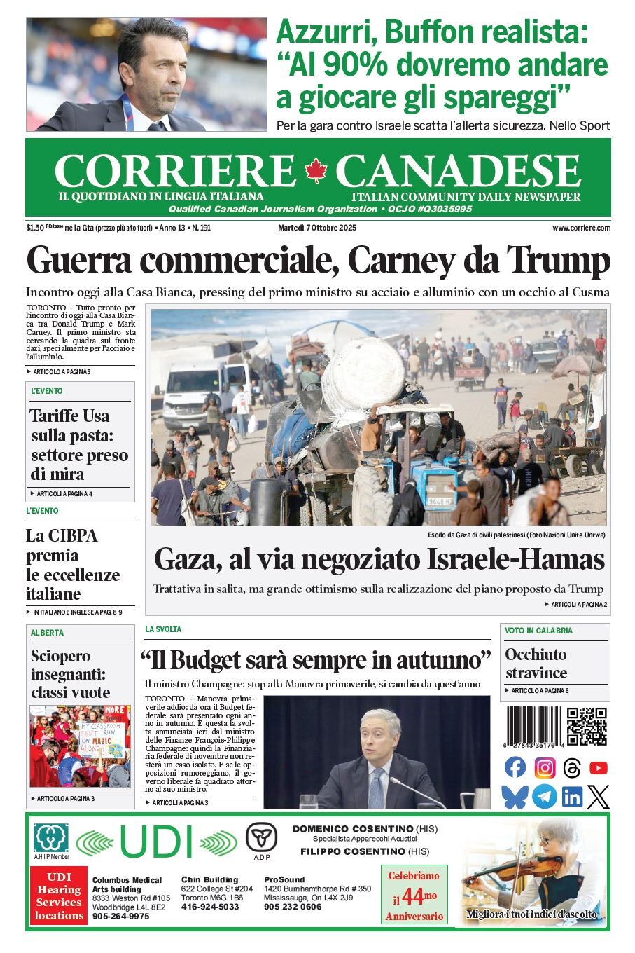 In edicola La nostra “vetrina” corriere canadese October 7, 2025 Clicca sull’immagine per ingrandirla (Cliccate qui per scaricare la prima pagina in formato .pdf) More Articles by the Same Author: La nostra “vetrina”La nostra “vetrina”YCDSB, il genitore di uno studente: “Il razzismo esiste ed è contro i bianchi”YCDSB, the father of a caucasian student: “Racism against white people”La nostra “vetrina”Share This Post - Condividi