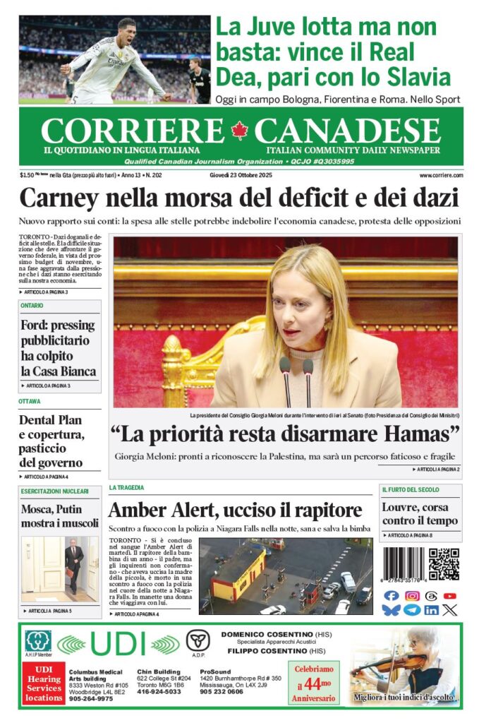 In edicola La nostra “vetrina” corriere canadese October 23, 2025 Clicca sull’immagine per ingrandirla (Cliccate qui per scaricare la prima pagina in formato .pdf) More Articles by the Same Author: I Blue Jays nella storia: ora la finalissima contro i Los Angeles DodgersLe “mulignane ‘a scarpone napulitane”Crostata di cioccolato con ricotta e amarettiLa nostra “vetrina”La nostra “vetrina”Share This Post - Condividi