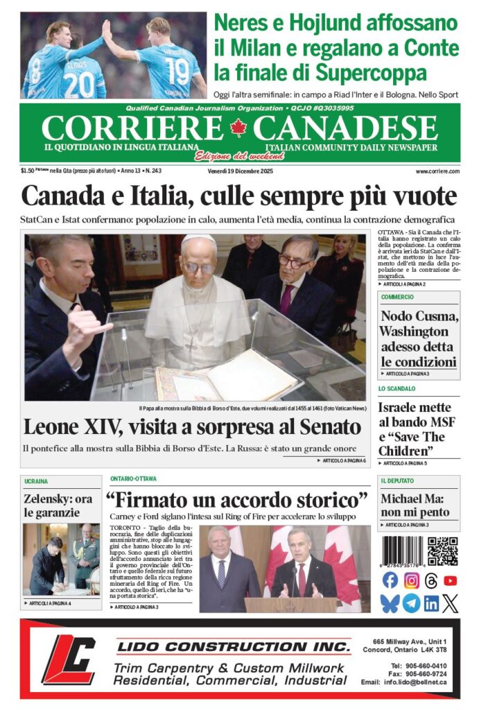 In edicola La nostra “vetrina” corriere canadese December 19, 2025 Clicca sull’immagine per ingrandirla More Articles by the Same Author: La nostra “vetrina”Le “crocette cosentine”Ed ecco la ricetta del Panforte di NataleLa nostra “vetrina”Gratis l’edizione digitale di oggi: ecco il link per scaricarlaShare This Post - Condividi