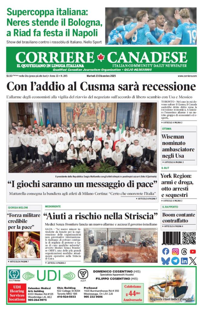 In edicola La nostra “vetrina” corriere canadese December 23, 2025 Clicca sull’immagine per ingrandirla More Articles by the Same Author: La nostra “vetrina”La nostra “vetrina”La nostra “vetrina”Le “crocette cosentine”Ed ecco la ricetta del Panforte di NataleShare This Post - Condividi