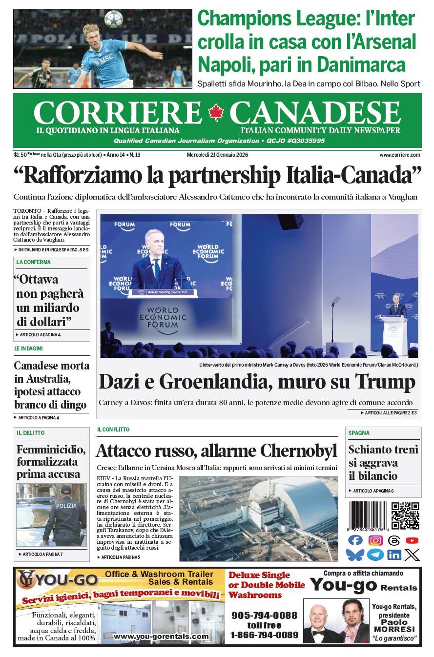 In edicola La nostra “vetrina” corriere canadese January 21, 2026 Clicca sull’immagine per ingrandirla More Articles by the Same Author: Alla scoperta del Canada con Arianna e StefanoLa nostra “vetrina”Un deficit necessario, con delle avvertenzeAn economic plan with necessary deficitLa nostra “vetrina”Share This Post - Condividi