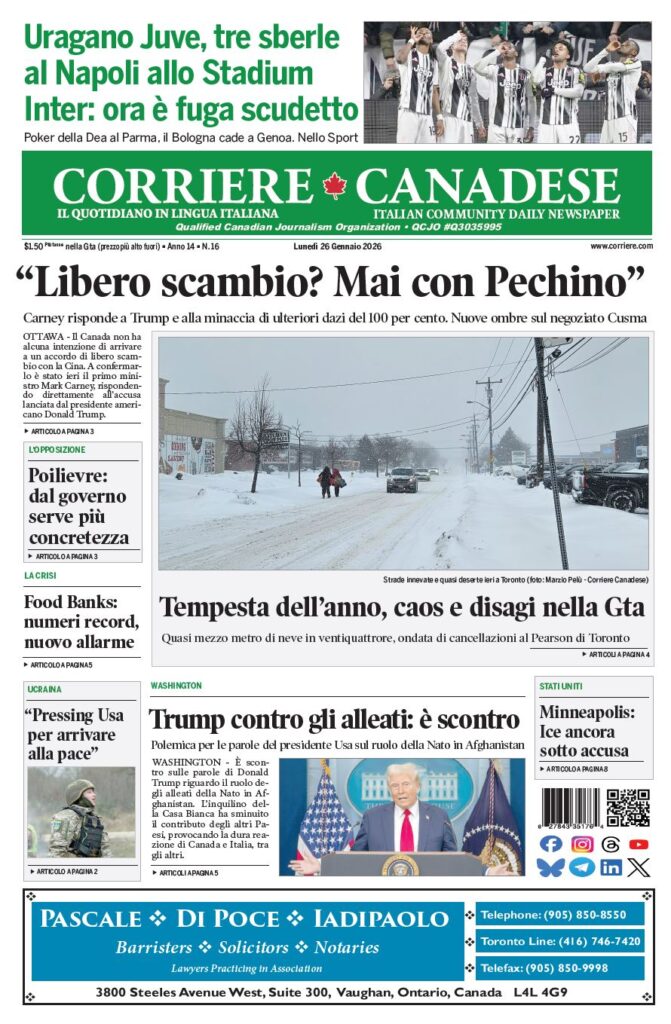 In edicola La nostra “vetrina” corriere canadese January 26, 2026 Clicca sull’immagine per ingrandirla More Articles by the Same Author: La nostra “vetrina”La nostra “vetrina”Ecco il cannolo di ricotta “alla murgiana”I “fusilli alla cilentana”La nostra “vetrina”Share This Post - Condividi