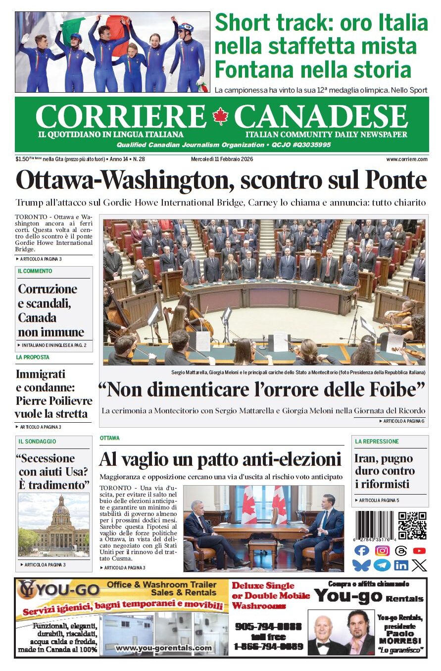 In edicola La nostra “vetrina” corriere canadese February 11, 2026 Clicca sull’immagine per ingrandirla More Articles by the Same Author: La nostra “vetrina”L’incontro fra l’Ambasciatore Cattaneo e la Speaker del Senato GagnéLa nostra “vetrina”La nostra “vetrina”Altre ricette a base di pancettaShare This Post - Condividi