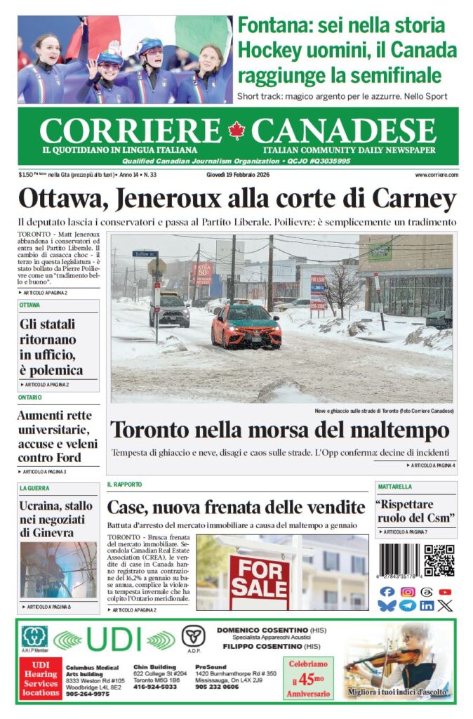 In edicola La nostra “vetrina” corriere canadese February 19, 2026 Clicca sull’immagine per ingrandirla More Articles by the Same Author: CIBPA: Sabrina Marrelli nuova presidenteIl “sanguinaccio dolce” napoletanoSartù di riso: un tuffo nella storia napoletanaLa manifestazione di Toronto riflette l’ampia unità della diaspora iraniana nonostante le divisioni politicheLa nostra “vetrina”Share This Post - Condividi