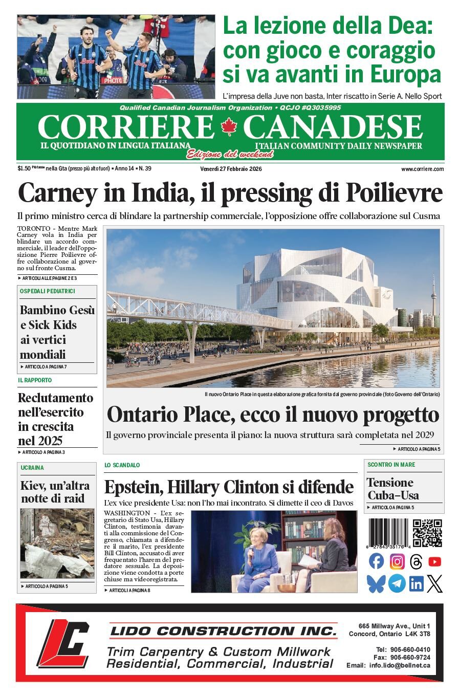 corriere canadese February 27, 2026