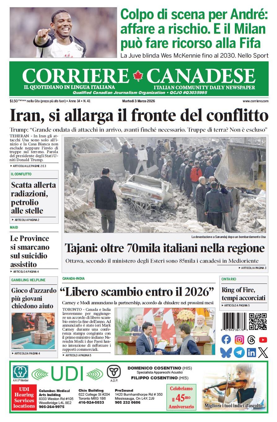 In edicola La nostra “vetrina” corriere canadese March 3, 2026 Clicca sull’immagine per ingrandirla More Articles by the Same Author: Cortellucci Hospice Vaughan: due pagine specialiLa nostra “vetrina”La nostra “vetrina”Firenze incanta tutti con il Premio ZeffirelliLa nostra “vetrina”Share This Post - Condividi