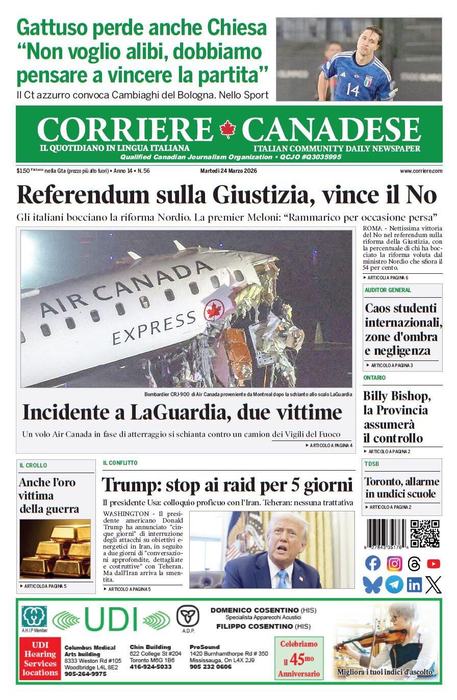 In edicola La nostra “vetrina” corriere canadese March 24, 2026 Clicca sull’immagine per ingrandirla More Articles by the Same Author: La nostra “vetrina”Order of Canada: due pagine specialiLa nostra “vetrina”Newfoundland e Labrador, missione italianaLa nostra “vetrina”Share This Post - Condividi