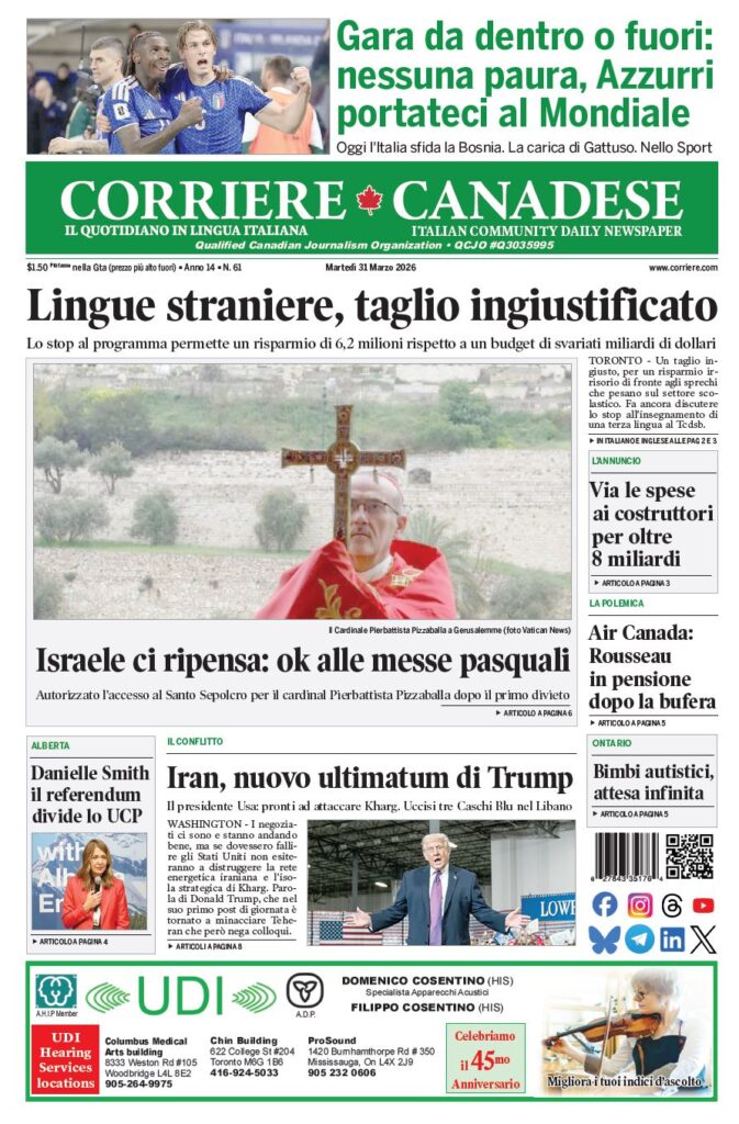 In edicola La nostra “vetrina” corriere canadese March 31, 2026 Clicca sull’immagine per ingrandirla More Articles by the Same Author: La nostra “vetrina”Lamborghini 2026: due pagine specialiLa nostra “vetrina”Il ponte che ha dato fastidio a qualcuno è indispensabile per Canada e UsaLa nostra “vetrina”Share This Post - Condividi