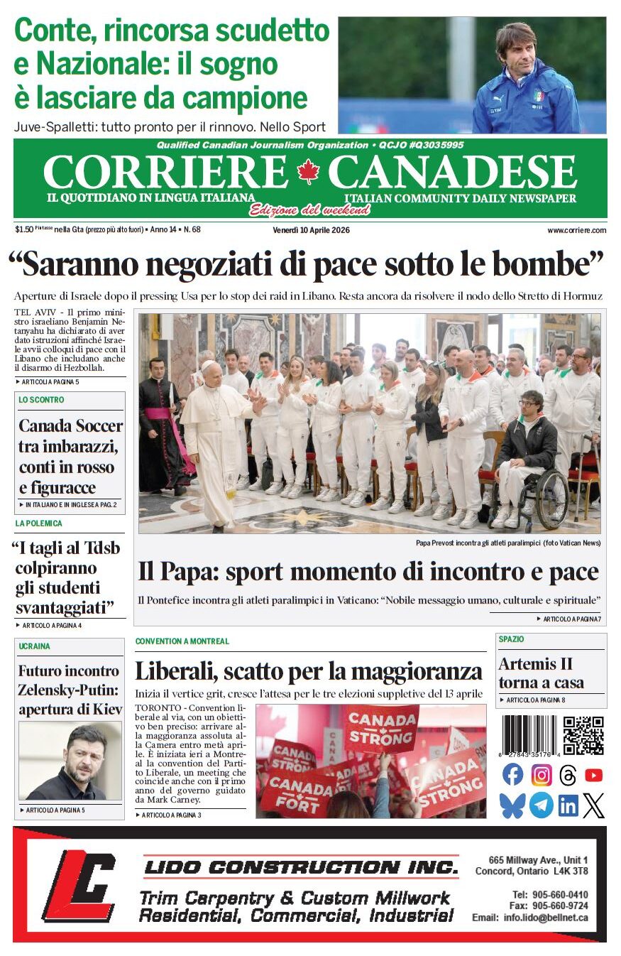 In edicola La nostra “vetrina” corriere canadese April 10, 2026 Clicca sull’immagine per ingrandirla More Articles by the Same Author: La nostra “vetrina”Le “bombette pugliesi”Gli spaghetti con ‘granseola’ e pomodoriniLa nostra “vetrina”La nostra “vetrina”Share This Post - Condividi