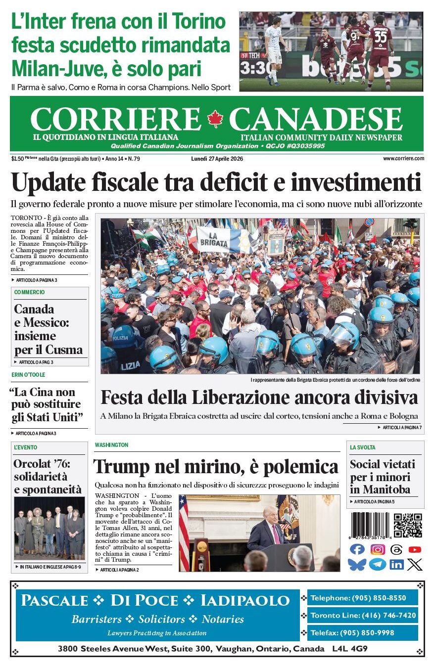 In edicola La nostra “vetrina” corriere canadese April 27, 2026 Clicca sull’immagine per ingrandirla More Articles by the Same Author: La nostra “vetrina”La nostra “vetrina”Scienziati d’Italia in Canada, assegnato il premio ‘Ingegno Italiano’Le “bianculidda n’ta fogghia”Bucatini cremosi con guanciale e fondutaShare This Post - Condividi