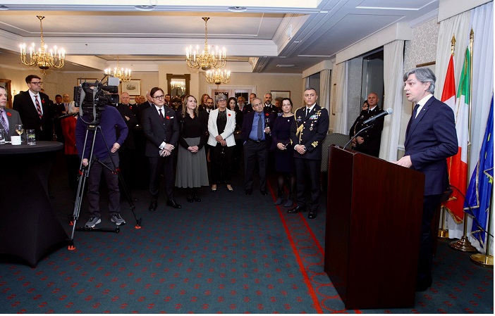 Nel suo indirizzo di benvenuto l’Ambasciatore d’Italia in Canada, Alessandro Cattaneo, ha sottolineato lo straordinario contributo delle Forze Armate italiane alla difesa della libertà, della democrazia e della pace, attraverso le missioni condotte nel quadro delle Nazioni Unite, della NATO (dove un contingente italiano è dispiegato in Lettonia sotto comando canadese) e dell’Unione Europea.