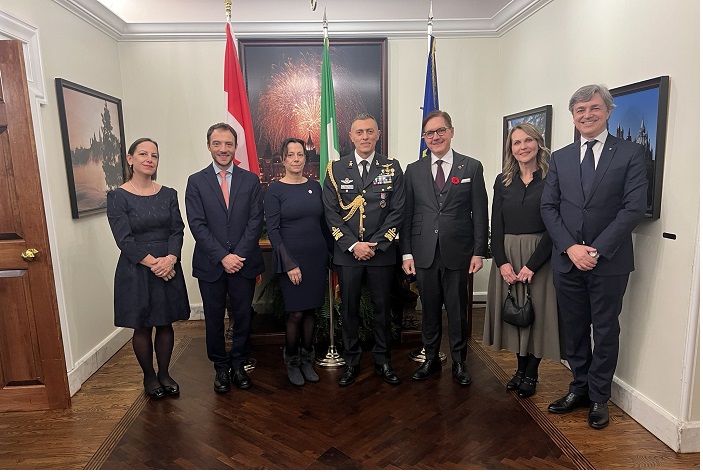 L’Ambasciatore Cattaneo ha ricordato come i rapporti tra Italia e Canada in ambito Difesa siano in crescita, richiamando le recenti missioni in Canada dei Sottosegretari di Stato Sen. Isabella Rauti e On. Matteo Perego di Cremnago. Dopo le parole di saluto del Generale di Brigata Area Davide Marzinotto, Addetto per la Difesa e la Cooperazione per la Difesa, sono intervenuti il Senatore Tony Loffreda e il Presidente del Gruppo di amicizia parlamentare Canada-Italia On. Angelo Iacono. Entrambi hanno ribadito i forti legami tra i due Paesi nel segno di valori quali democrazia e libertà.