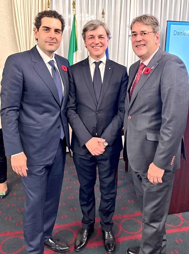 L’Ambasciatore Cattaneo con gli MP Vince Gasparro e Claude Guay