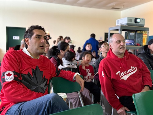 TORONTO – Oltre 150 persone si sono riunite domenica scorsa alla North Toronto Memorial Arena per fare il tifo in occasione della partita olimpica di hockey del Team Canada contro la Francia.