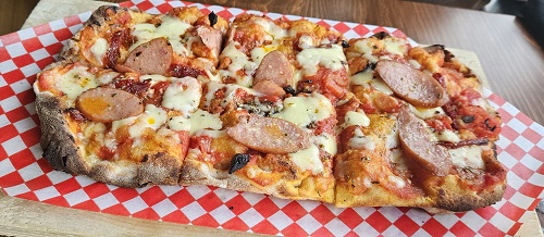 Una “pinsa” appena sfornata da Gino Benevenga nel suo locale “Venga Cucina” al 3076 di Dundas Street West a Toronto