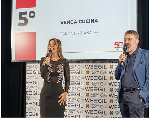 La premiazione di “Venga Cucina”, con la presentatrice Barbara Politi e Bruno Petronilli che ha curato la guida “50 World’s Best Pinsa”