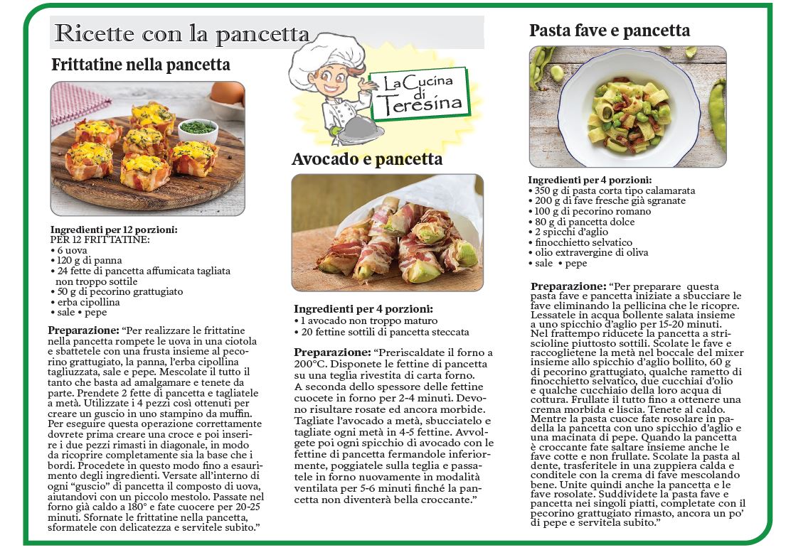 TORONTO – Dalla “Cucina di Teresina” … ecco a voi alcune ricette a base di pancetta.