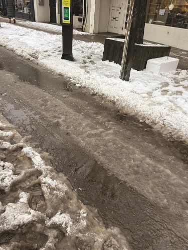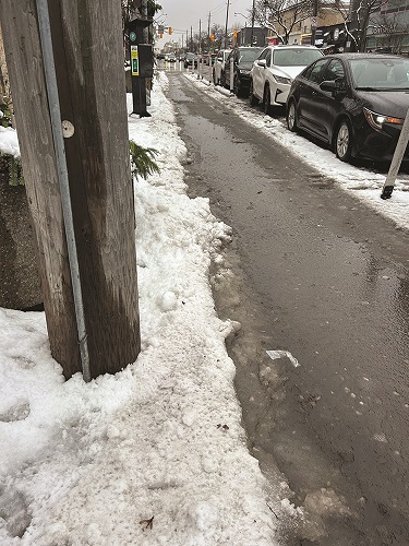 Those interested in rushing their pet to the Veterinarian Clinics along Eglinton Ave should bring a skidoo. Parking is impossible to find on the street, mostly because the markings are impossible to find under the black-coloured slush If you are lucky to do so, it’s over $5 an hour. Make sure you wear flood boots as you will need to stand in the river while picking up your pet to carry over to the slippery sidewalk.