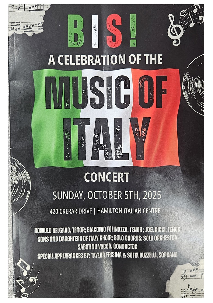 Da un punto di vista personale, i copresidenti Filomena Frisina e Frank Raso del Comitato Concerti BIS! meritano un elogio speciale per un evento davvero speciale. Così come altri che ho riconosciuto come collaboratori secondari (Larry Di Ianni, Joe Baiardo, Tony Cina, Charles Crisimini e Mary Yachetti). Insieme ad altri, sono riusciti ad acquistare una scuola superiore cristiana dismessa e stanno trasformandola in un centro comunitario completamente funzionale per mettere in mostra l’arte, i costumi, le tradizioni e la creatività italiana, nonché per celebrare l’esperienza italiana in Canada, in particolare nella grande area di Hamilton-Niagara. Dio li benedica! Il Corriere sarà lieto di pubblicizzare questi grandiosi risultati.