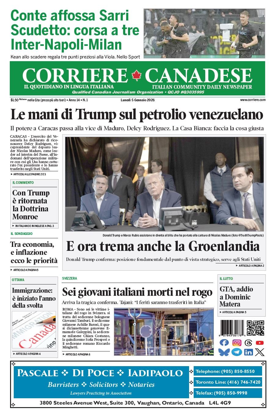 All trademarks and trade names are trademarks or registered trademarks of Corriere Canadese or its affiliated companies or are the trademarks of their respective owners. The display of trademarks or trade names on each of the Websites does not convey or create any license or other rights in these marks or names.