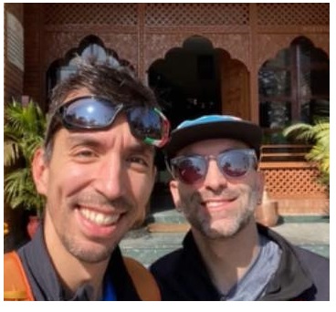 In alto, da sinistra: Marco Di Marcello e Paolo Cocco a Katmandu in una foto pubblicata sul profilo Facebook di Marco prima di iniziare la salita