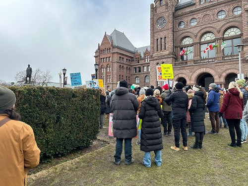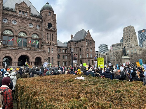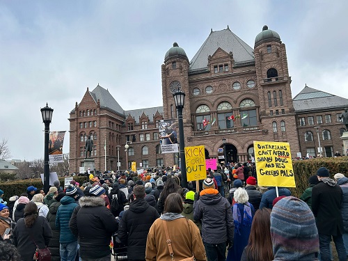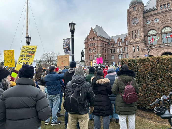 Nella foto in alto e quelle qui sotto, la manifestazione contro Doug Ford svoltasi sabato a Queen’s Park (foto: Matteo Volpe)