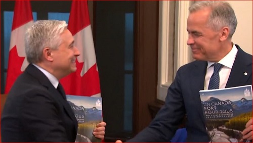 Nella foto in alto, Champagne e Carney con una copia dell’Update fiscale presentato ieri