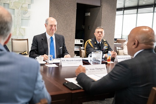 OTTAWA – Il Segretario Generale del Ministero degli Affari Esteri e della Cooperazione Internazionale, Ambasciatore Riccardo Guariglia, si è recato in missione a Ottawa dal 12 al 13 aprile, per guidare la delegazione italiana, assistito dall’Ambasciatore d’Italia in Canada, Alessandro Cattaneo, al Dialogo Strategico Italia-Canada. Capo delegazione canadese è stato il neo-designato Vice Ministro degli Esteri Arun Thangaraj.